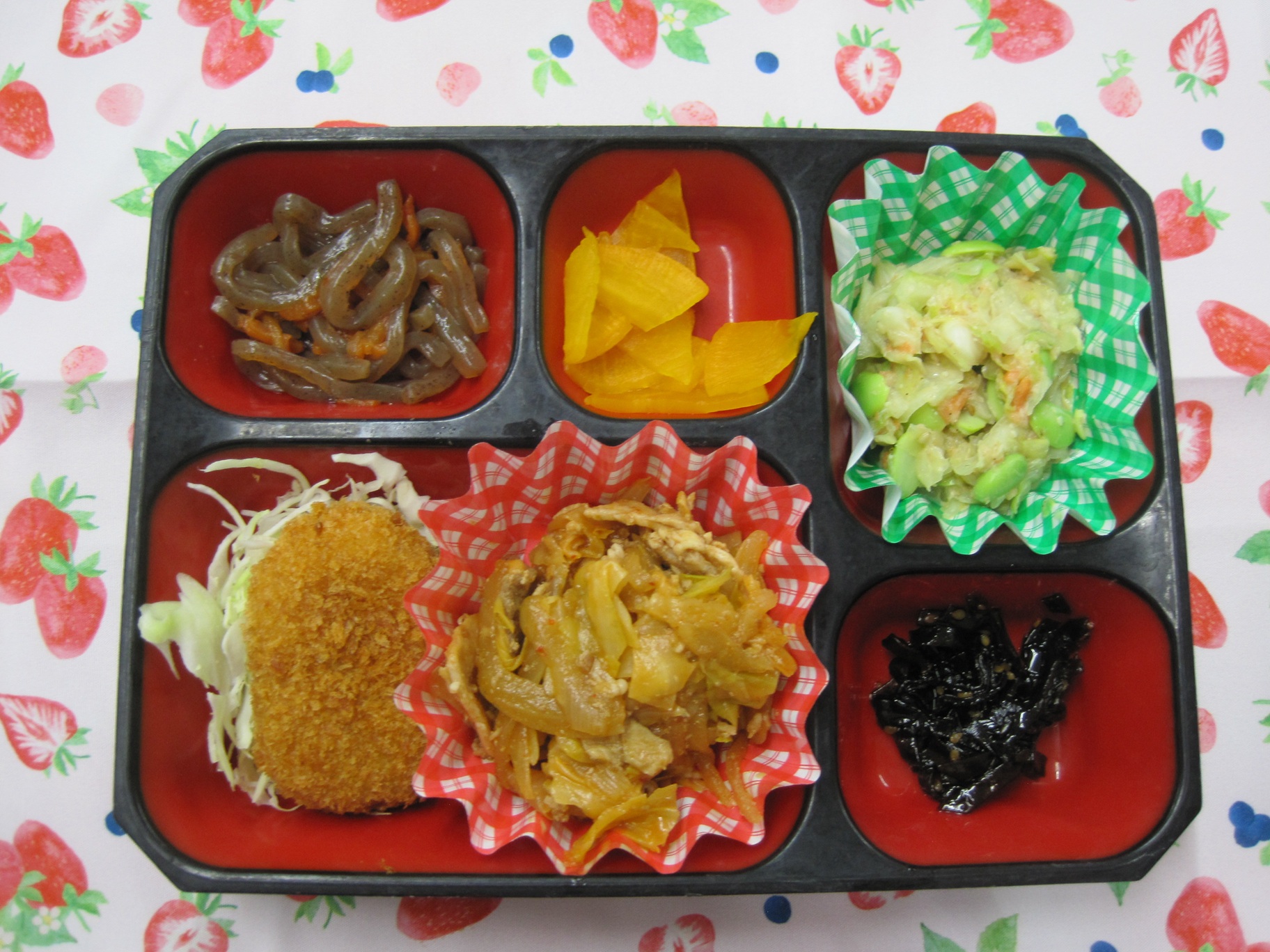 鶏のケチャップ甘酢あん*中華和え*突きこんにゃくおかか煮*インゲン甘辛煮*その他 |