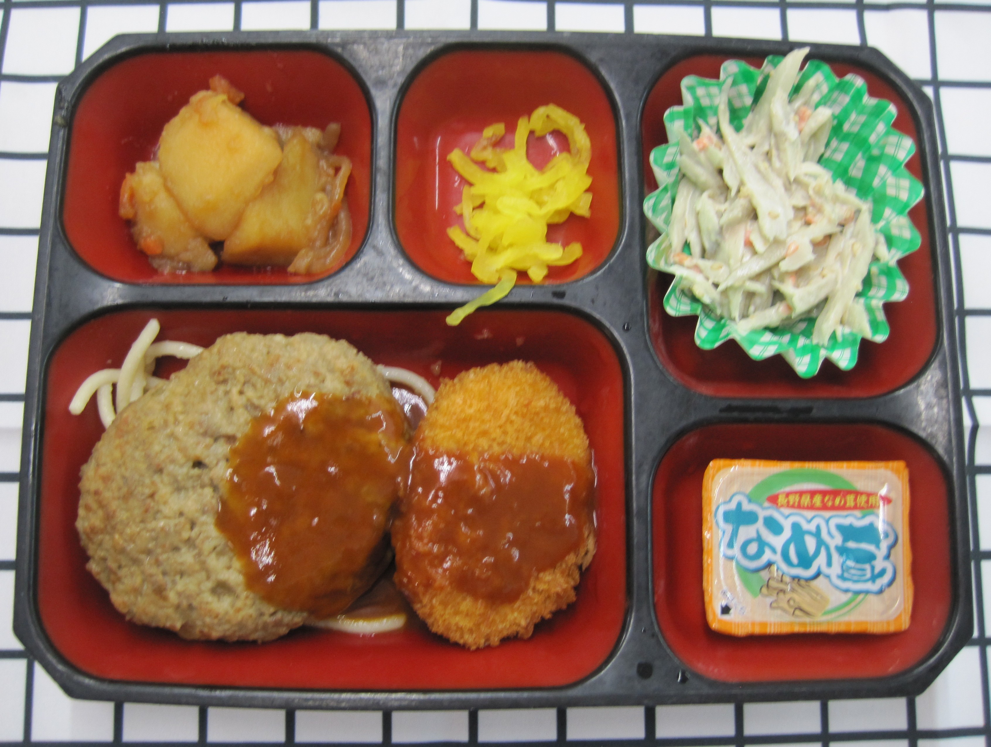 メンチカツ&ささみフライ)スタミナソース*きゃべつのおかか和え*焼ちゃんぽん*三色豆*その他 |